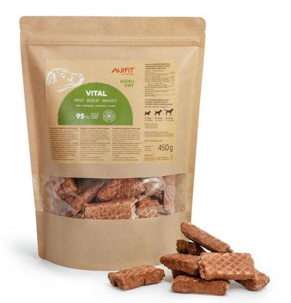 Dog Vital bœuf contient déjà tous les ingrédients nécessaires à l'alimentation crue. Les ingrédients sont lyophilisés afin de les conserver au mieux. Ce produit est donc la solution parfaite pour les déplacements.